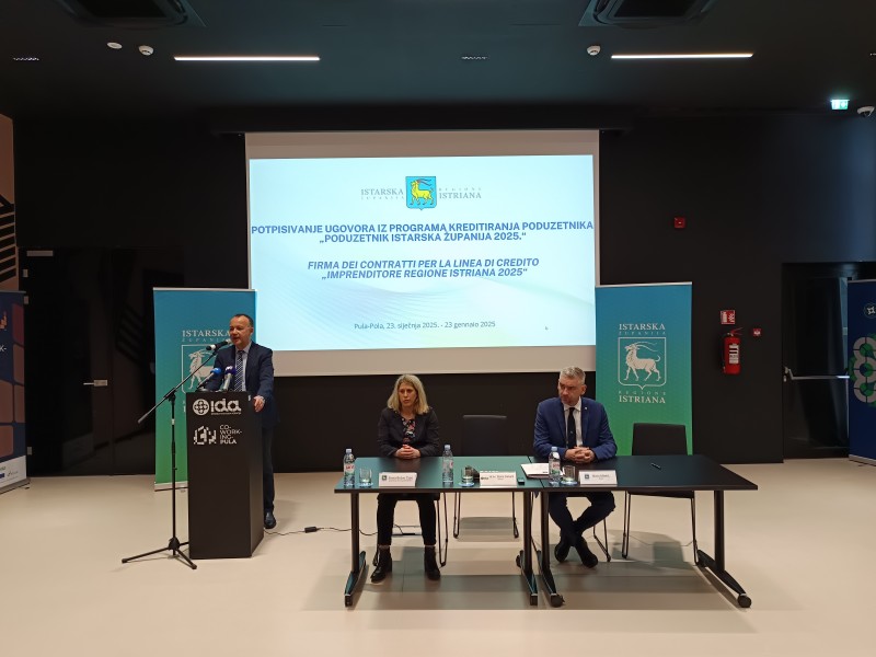 U Poduzetničkom centru Coworking Pula danas je istarski župan Boris Miletić, zajedno s direktorom Istarske razvojne agencije IDA d.o.o. Borisom Sabattijem, potpisao ugovore iz Programa kreditiranja poduzetnika „Poduzetnik Istarske županije 2025.“ s gradonačelnicima istarskih gradova. Potpisivanju je prisustvovala i pročelnica Upravnog odjela za gospodarstvo Istarske županije Elena Božac Čujić.