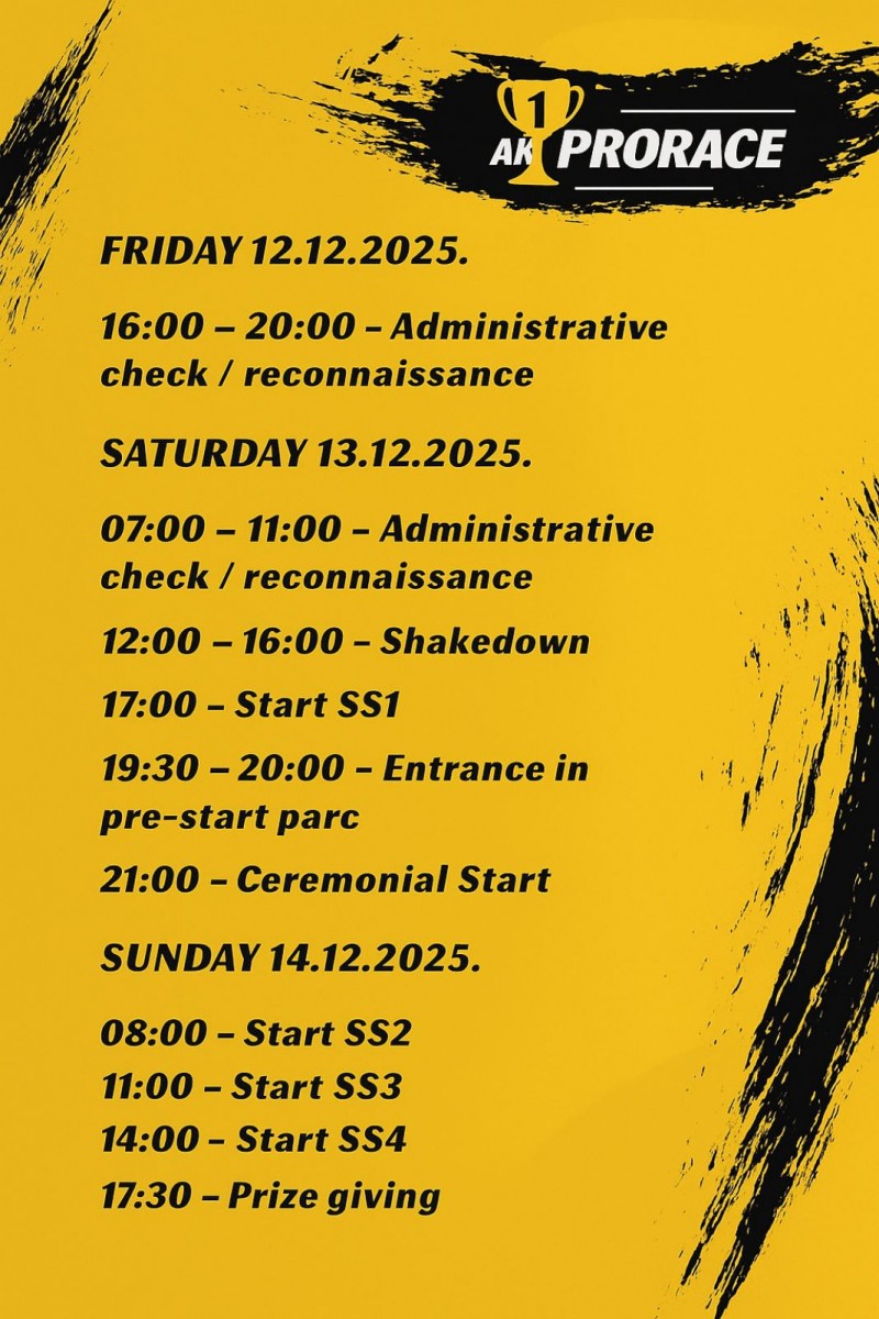 Dok će se administrativni dio održati u petak, natjecateljski dio slijedi u subotu i nedjelju, a uključivat će 4 brzinska ispita s ukupnom dužinom od 46,97 km. Prošlogodišnji zgoditak bio je noćni brzinac, koji će se i ove godine voziti u subotu od 17.00 sati. Osim noćnog brzinca, u subotu od 12:00 sati gledatelji će moći uživati u shakedownu, dok u nedjelju sve starta već od 08:00 sati, a sama podjela nagrada očekuje se oko 17:30 na igralištu kod škole.