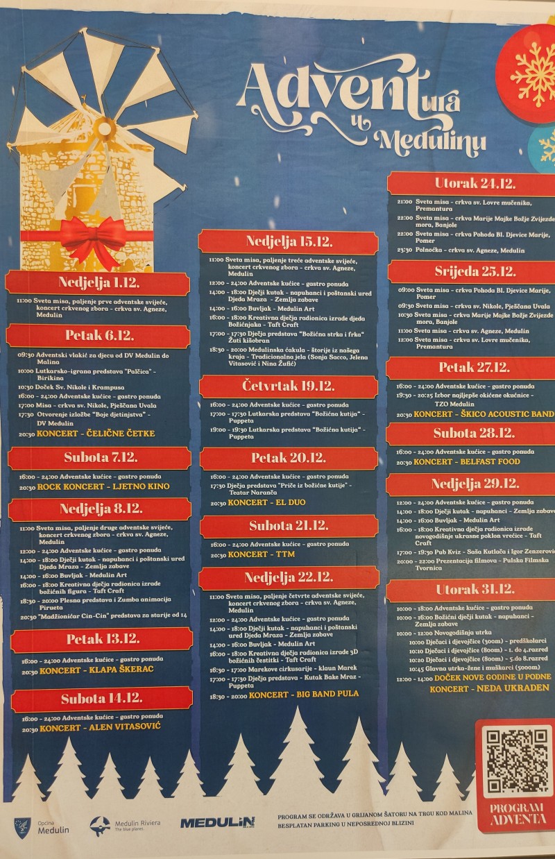 „Ovo nam je četvrti po redu Advent u Medulinu, a ove smo godine malo koncept promjenili. Bazirali smo se više na događanja vikendom gdje ćemo imati raznih programa i sadržaja za sve generacije.“ istaknuo je načelnik Kirac te pozvao sve da se pridruže još jednoj Adventuri u radosti i veselju.