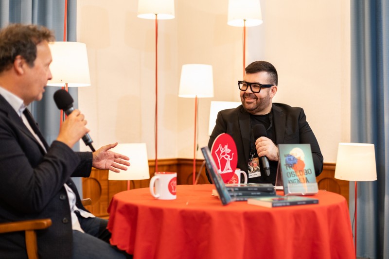 „Bolujem od depresije, moja dijagnoza je F32,1 - srednji stupanj depresije. Imam sreću u nesreći da uz ovaj stupanj bolesti mogu raditi, a za mene je rad terapija i po preporuci liječnika. Ljudi nekako pomalo mijenjaju mišljenje o depresiji i anksioznosti i kroz ovakva iskustva, kao što je današnja promocija na Sajmu. Imam dojam da radim nešto korisno i to mi ne predstavlja problem“, kazao je Aleksandar Stanković koji je u programu Nemiri pred brojnom publikom predstavio svoju novu knjigu „F32“ (Telegram). S njim je o knjizi, koja, otkrio je autor, ima i jednu priču koju je napisala Umjetna inteligencija - pred brojnim posjetiteljima razgovarao publici omiljeni sajamski voditelj Emir Imamović Pirke.