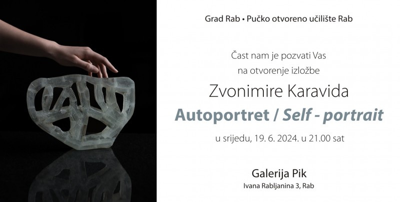 U srijedu 19. lipnja u 21 sat održat će se svečano otvorenje samostalne izložbe "Autoportret" akademske umjetnice Zvonimire Karavide u Galeriji Pik u Rabu u sklopu Rapskog likovnog ljeta u organizaciji Pučkog otvorenog učilišta Rab. Kustosica izložbe je povjesničarka umjetnosti i muzeologinja Sonja Švec Španjol. Autorica će se predstaviti fascinantnim skulpturama izvedenim u mediju stakla, koji vremenski variraju od diplomskog rada nastalog 2016. godine pa sve do recentnih djela nastalih ove godine. Od završetka studija do danas Zvonimira Karavida kontinuirano se bavi kiparstvom, a ponajviše istraživanjem medija stakla u kojem je ostvarila i nekoliko izložbi.
