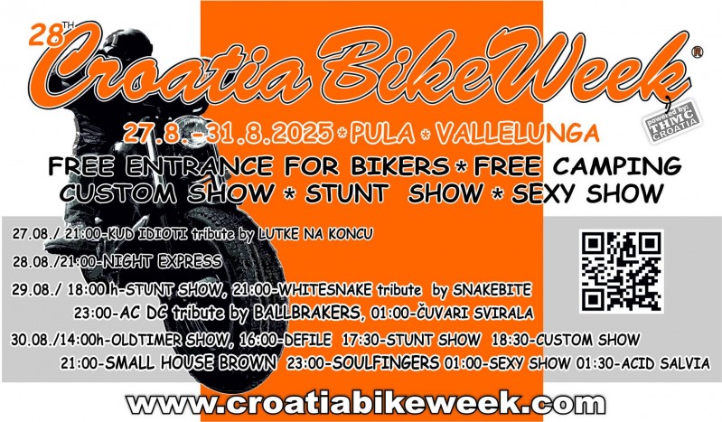 Croatia Bike Week se potvrđuje kao savršena kombinacija ljetnog odmora, rock glazbe i moto adrenalina, pa Pula i ove godine postaje nezaobilazna destinacija za sve ljubitelje dvotočkaša i dobre zabave.