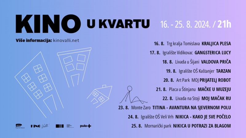 Od 16. do 25. kolovoza, svake večeri u 21:00 sat, na 10 lokacija gledamo 10 recentnih animiranih i igranih filmskih naslova za djecu, mlade i sve zaljubljenike obiteljskih filmova.
