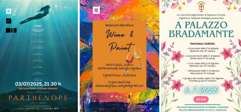 Dan nakon, u nedjelju 6. srpnja, s početkom u 20 sati, Zajednica Talijana Vodnjan poziva na kulturno večer „A palazzo Bradamante“.