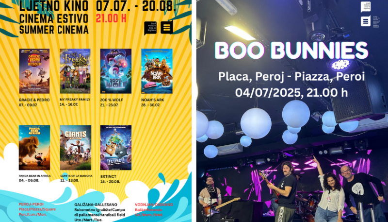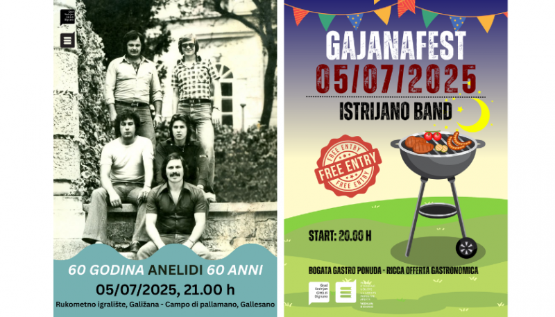 To nije sve. U Peroju u petak, 4. srpnja, nastupaju Boo Bunnies (Placa, 21 sat), u Galižani se u subotu, 5. srpnja, sprema veliki koncert povodom 60 godina Anelida (nogometno igralište, 21 sat), dok se u Gajani isti dan održava Gajanafest uz Istrijano band.