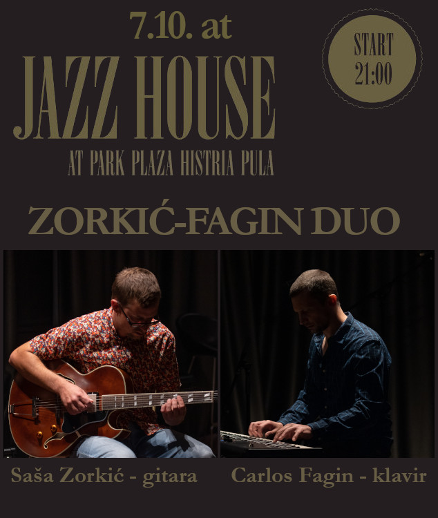 Svjedočite dijalogu dvoje vještih glazbenika koji će vas u opuštenoj atmosferi uvesti u svijet bezvremenskih jazz standarda. Zvuk gitare (Saša Zorkić) i klavira (Carlos Fagin) proživjet će svoju vlastitu priču, međusobno se nadopunjujući i stvarajući glazbenu čaroliju koja će vas ponijeti daleko od svakodnevnice.