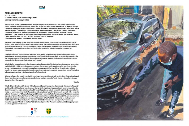 Podnaslov ove izložbe “Ljepota je prolazna, neuspjeh ostaje” je naziv jedne od slika koje možete vidjeti na ovoj izložbi. Izložba je u galeriji Poola, Kandlerova 14, 52100 Pula.