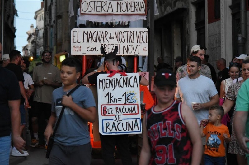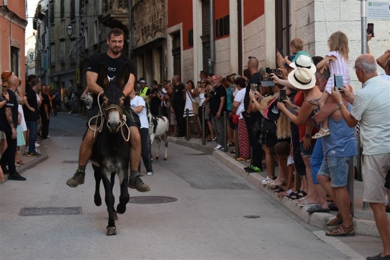 Program je počeo već ujutro sportskim turnirima, sadržajima za djecu, nastupima limene glazbe i tako dalje, da bi se predvečer svi sakupili na Narodnom trgu iščekujući uvijek atraktivnu Trku na tovarima. Ove je godine niz Trgovačku ulicu do Place jahalo 23 jahača na tovarima, a prvi je na cilj uz veliku prednost ujahao Gordan Galant iz Rovinja na tovaru Benitu. Galant i Benito pobijeđivali su i ranijih godina te su neprikosnoveni pobjednici istarskih trkališta. Ove godine publika nije vidjela puno padova pred ciljem, ali se zato dobro nasmijala kad je jedan tovar do Place utrčao sam, bez jahača. Tovari raznih veličina i pasmina bili su izrazito poslušni, na sreću jahača.