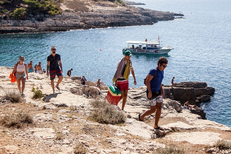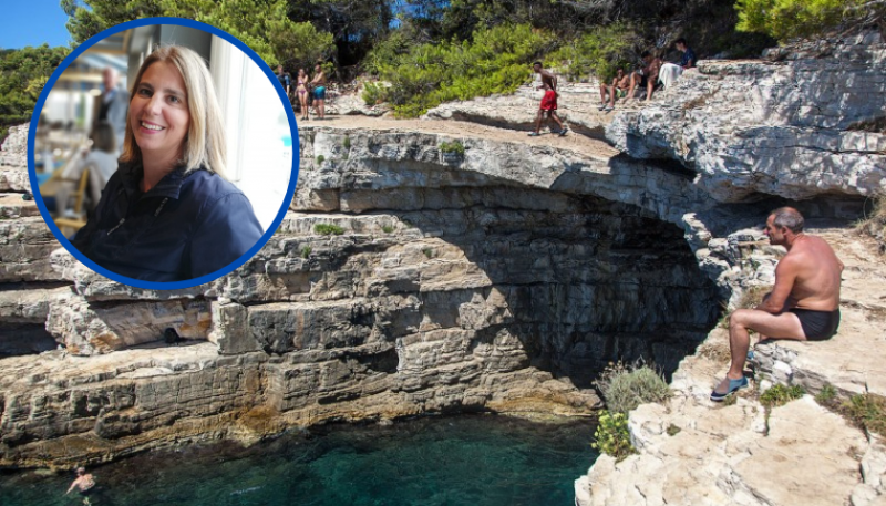 Na ovom popularnom mjestu ove je turističke sezone vladao opći kaos. Stijene su prebukirane turistima, more je preplavljeno plovilima, uključujući grupe turista na kajacima, daske za veslanje, unajmljene čamce i jet-skijevi koji se opasno približavaju obali. Kupači se neprestano moraju sklanjati kako bi izbjegli nadolazeća plovila, stvarajući dojam potpune nesigurnosti.