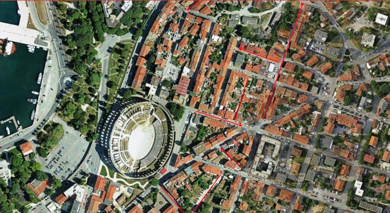 - na Trgu Nimfej, od Istarske ulice do Flavijevske ulice