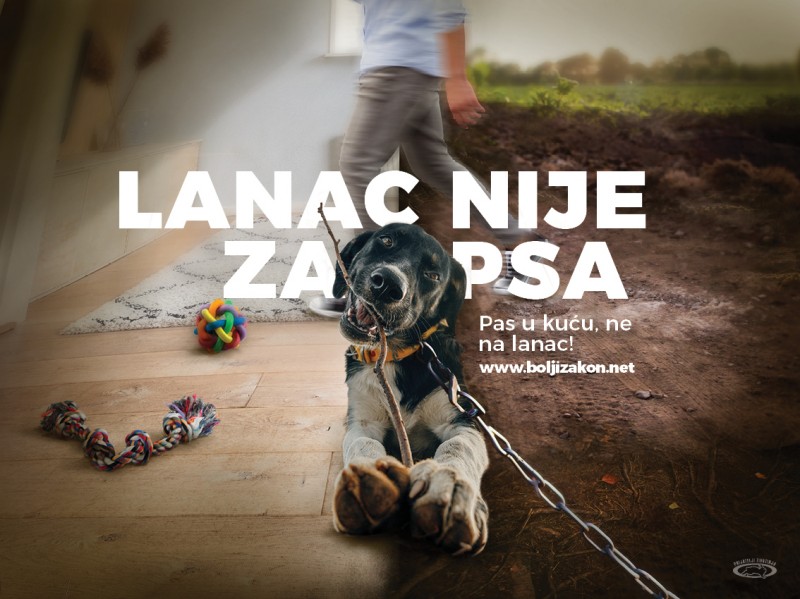 Od jučer, na ulicama Zagreba, Varaždina, Osijeka, Rijeke, Zadra, Splita, Pule i drugih gradova, mogu se vidjeti dojmljivi jumbo plakati udruge Prijatelji životinja. Dirljivim vizualom s porukom: „Lanac nije za psa. Držanje pasa na lancu treba zabraniti.” šalju snažnu poruku o stravi držanja pasa na lancu i ističu jedan od svojih prijedloga za izmjene Zakona o zaštiti životinja.
