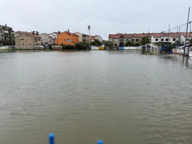 Istovremeno, poplavio je i nogometni teren Oliva u Fažani, što dodatno pokazuje razmjere problema koje je uzrokovalo nevrijeme.