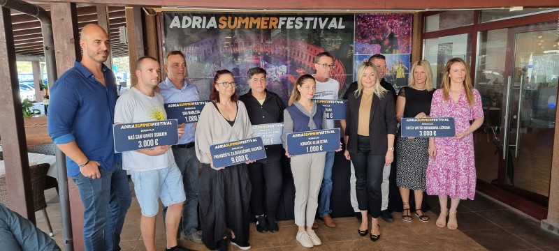 U petak, 06.10.2023. u restoranu Volaria, nešto manje od dva mjeseca nakon održanog Adria Summer Festivala, organizatori su upriličili svečanu dodjelu donacija iz humanitarnog fonda Festivala u ukupnoj vrijednosti od 20.000,00 €. Donacije su uručili organizatori Festivala Sandro Želesko i Branko Percan, te zamjenica gradonačelnika Grada Pule, Ivona Močinić.