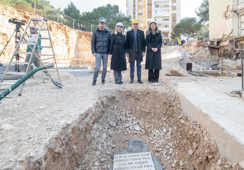 Polaganjem kamena temeljca danas je svečano obilježeno otvorenje radova na projektu dogradnje i rekonstrukcije matične zgrade županijskog Doma za starije osobe Alfredo Štiglić Pula. Riječ je o trenutno najvećoj investiciji u području socijalne skrbi Istarske županije, vrijednoj više od 10,6 milijuna eura, a koju zajednički financiraju Istarska županija i Grad Pula, u jednakim omjerima.