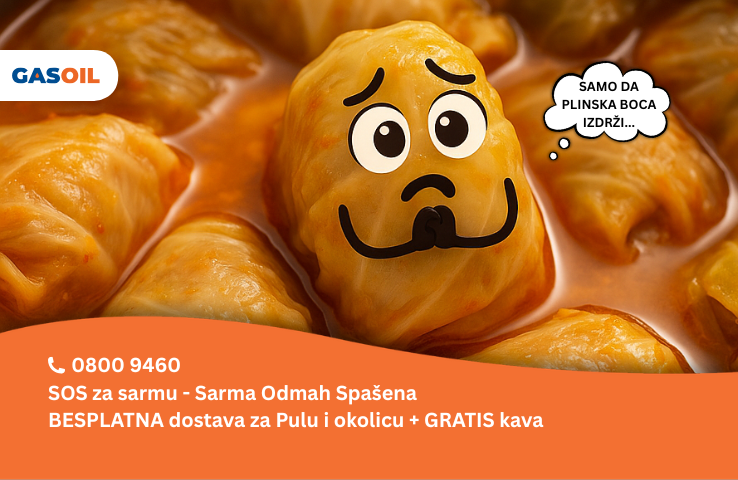 Za hitne slučajeve: nazovite Gas Oil na besplatni broj 0800 9460. Spašavaju sarme, živce i blagdane, a dostava na području grada Pule i okolice je besplatna.