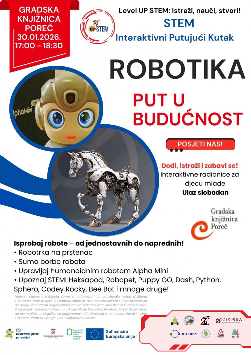 U okviru EU projekta „Level Up STEM: Istraži, nauči, stvori!“ planirano je da se u sljedeće tri godine na području Istre održi ukupno pet radionica godišnje, s ciljem približavanja robotike široj javnosti. Jedna od tih radionica nosi naziv „Robotika: Put u budućnost“, a osmišljena je kao interaktivno i zabavno iskustvo za djecu i odrasle.