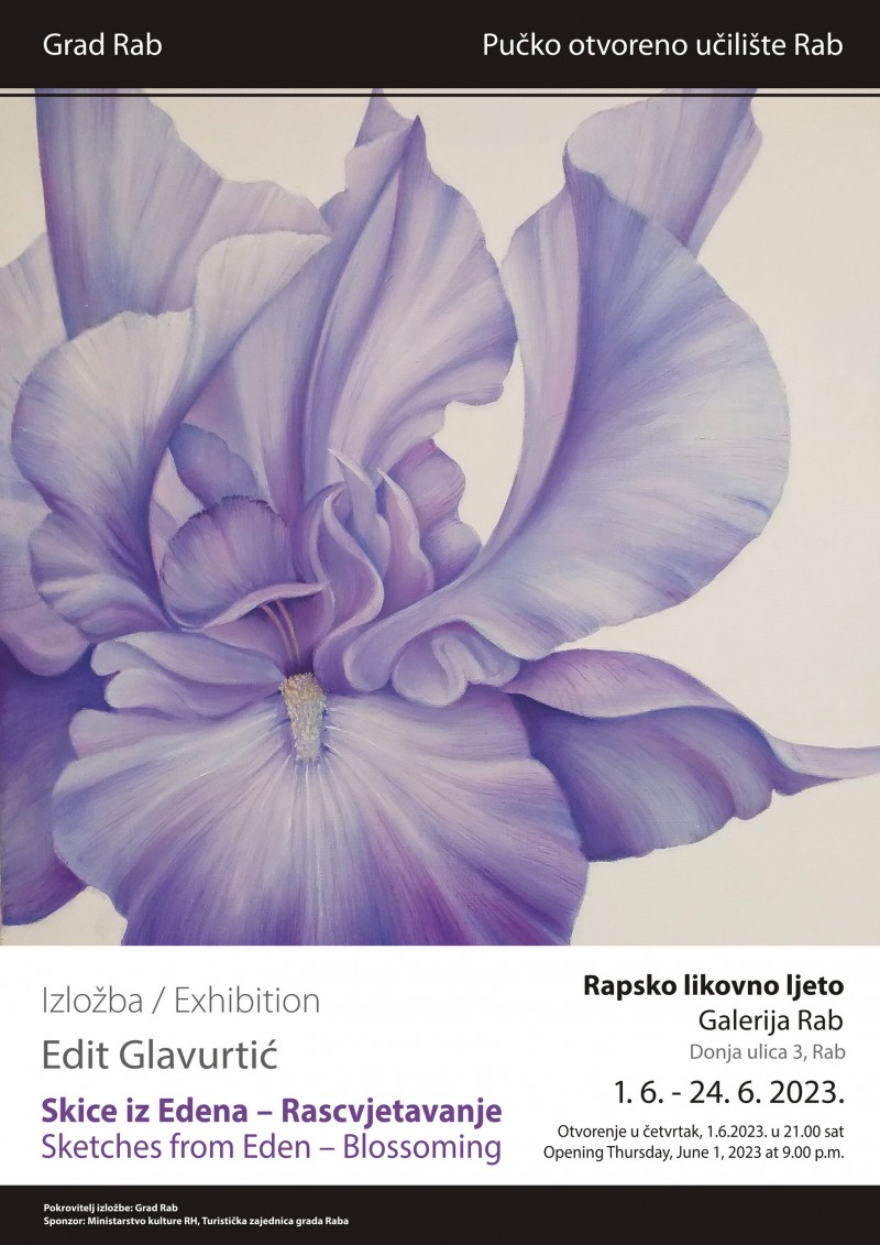 Do 24. lipnja možete pogledati samostalnu izložbu „Skice iz Edena – Rascvjetavanje“ akademske slikarice Edit Glavurtić u Galeriji Rab.