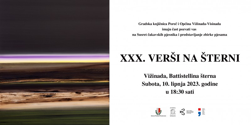 Gradska knjižnica Poreč i Općina Vižinada-Visinada pozivaju vas na XXX. Susret čakavskih pjesnika VERŠI NA ŠTERNI i promociju istoimene zbirke pjesama, koji će se održati u subotu, 10. lipnja 2023. godine u 18.30 sati u Vižinadi na Battistellinoj šterni.