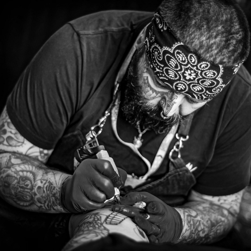 - Počelo je prilično rano, moj interes za tetovaže i tetoviranje se pojavio već negdje u 12.-13. godini. Oduvjek sam bio okružen ljudima koji su nosili tetovaže na sebi. Moj otac ima na sebi tetovirano klasično sidro JRM-a na podlaktici, a većina ljudi na Braču su bili pomorci pa su imali tetovaže po sebi,neki su bili po zatvorima pa su imali uspomene na to vrijeme. Po dolasku u Njemačku sam otkrio njihov tattoo magazin koji je 1994. krenuo u štampu, kao i tattoo international i slične magazine vezane uz bikersku i neke druge subkulture. To me tada navelo da sam počnem crtat i precrtavati te motive. Istovremeno sam otkrio i čari grafita, ali i muziku koja ide uz to, Punk, hard core, ska i reggae, pa sam dosta vremena provodio crtajući CD covere i motive za bedževe, majice i banere raznih bendova u kojima sam bio aktivan ili s kojima sam se družio. S vremenom su se stariji frendovi počeli tetovirat pa sam i za njih crtao motive i odlazio sa njima po tattoo shopovima. Negdje 1999. sam počeo skupljati potrebnu opremu. I 2001. godine sam imao sve potrebno da mogu odraditi prvu tetovažu u čistim i urednim uvjetima sa profi opremom. Prije toga sam malo bockao bez mašina, igla, konac, rotring tuš i udri. Hvala bogu i mojim vjernim prijateljima na njihovoj hrabrosti.