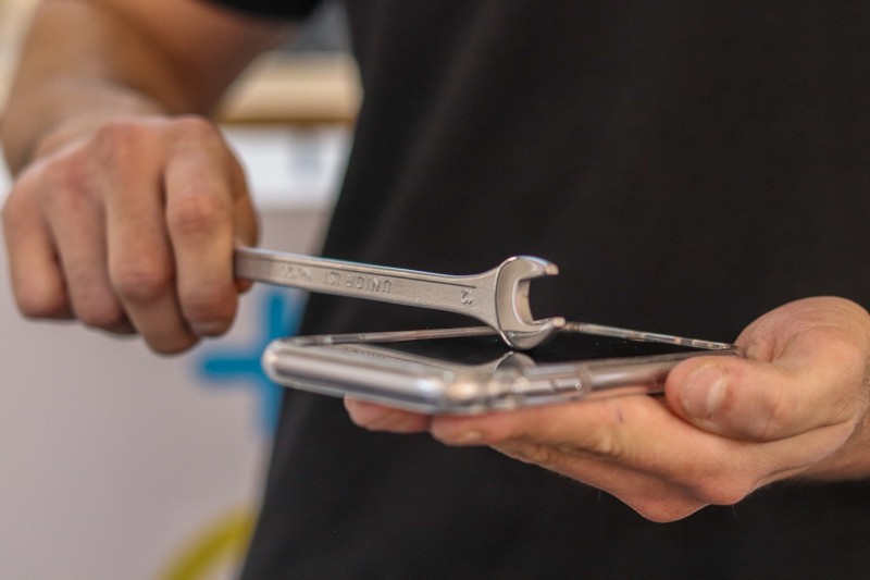 Ono po čemu se izdvajaju od ostalih je izvanredna kvaliteta koju pružaju svojim kupcima. Folija koju koriste nije napravljena od kaljenog stakla već od poliuretana zbog čega ne dolazi do pucanja. Folija je elastična i mekana, a dizajnirana na način da na sebe prima oštećenja povećavajući šanse da uređaj neće biti oštećen. Taj materijal obično se koristi u vojne svrhe pa se primjerice elisa helikoptera radi upravo od poliuretana. Djelatnik Mobile Outfittersa dokazao nam je da bacanje uređaja s visine ni neprestano udaranje čekićem neće razbiti ekran ako je obložen njihovom zaštitnom folijom.