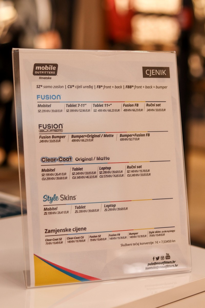 Cijena usluge ovise o proizvodu koju kupac odabere, no kreću se od 26.41 eura za Clear-Coat zaštitu samog zaslona do 92,77 eura za Bumper+Fusion zaštitu cjelokupnog uređaja sa svih strana. Folija Clear Coat odlično se kombinira s jedinstvenom Fusion Bumper zaštitom, koje zajedno donose najveću zaštićenost uređaja, a gumbi i utori ostaju dostupni bez skidanja zaštite.