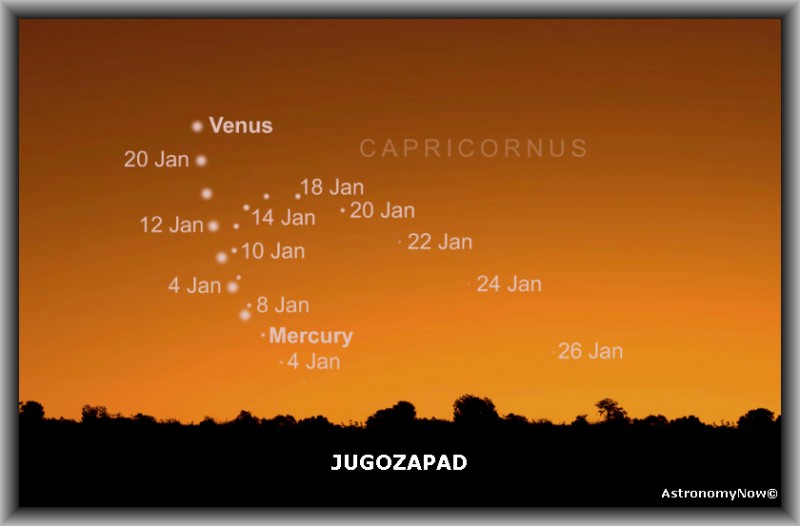Tijekom narednih dana Venera i Merkur će se sve više udaljavati jedno od drugog. Venera kreće sve višlje a Merkur se vraća prema horizontu da bi se kroz petnajstak dana potpuno izgubio u Sunčevom blještavilu. Tome je uzrok nebeska mehanika i položaj nebeskih tijela u prostoru. Imate li fotoaparat ili mobitel svakako izađite negdje na otvoreno i okušajte se u astronomskoj pejzažnoj fotografiji. Najvažnije od svega je da imate neometen pogled prema rubu horizonta.