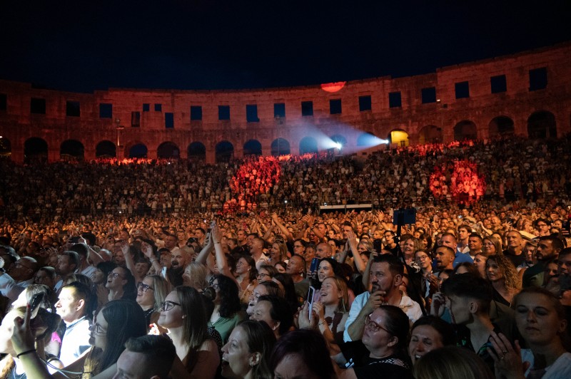 U čarobnoj noći pod zvjezdanim nebom u Puli, Gibonni je sinoć održao koncert koji će publika dugo pamtiti – rasprodana Arena postala je hram glazbe, emocije i čiste umjetnosti. Bilo je to više od koncerta – bio je to susret srca, sjećanja i neizmjerne ljubavi između izvođača i njegove vjerne publike koje je uz Gibu pjevala puna tri sata.