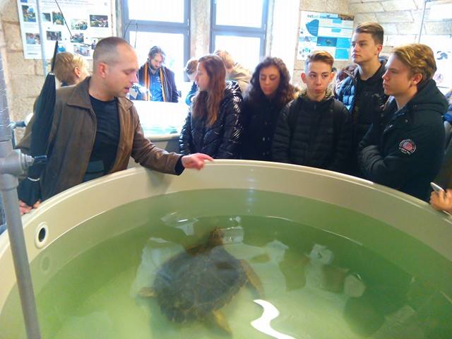 Program učeničke razmjene u Gimnaziji Pula provodi se vrlo uspješno već nekoliko godina, zahvaljujući inicijativi profesora engleskoga jezika Marijane Tomić i Dejana Pavlinovića, te profesora povijesti Filipa Zoričića. Budući da je nedjelju, kada je bio planiran bike izlet na Rt Kamenjak plan omela kiša, učenici su posjetili Aquarium Pula na Verudeli, direktorice i vlasnice Milene Mičić, uživajući u stručnom vođenju biologa Nevena Iveše. Ondje su se upoznali sa postavom sjevernog Jadrana, izložbom "Evolucija", slatkovodnim ribama Hrvatske, ribama južnog Jadrana, morskim konjićima, Centrom za oporavak morskih kornjača, tropskim ribama, a uživali su i u pogledu s vidikovca na krovu utvrde Verudela, u kojoj je smješten i Aquarium.
