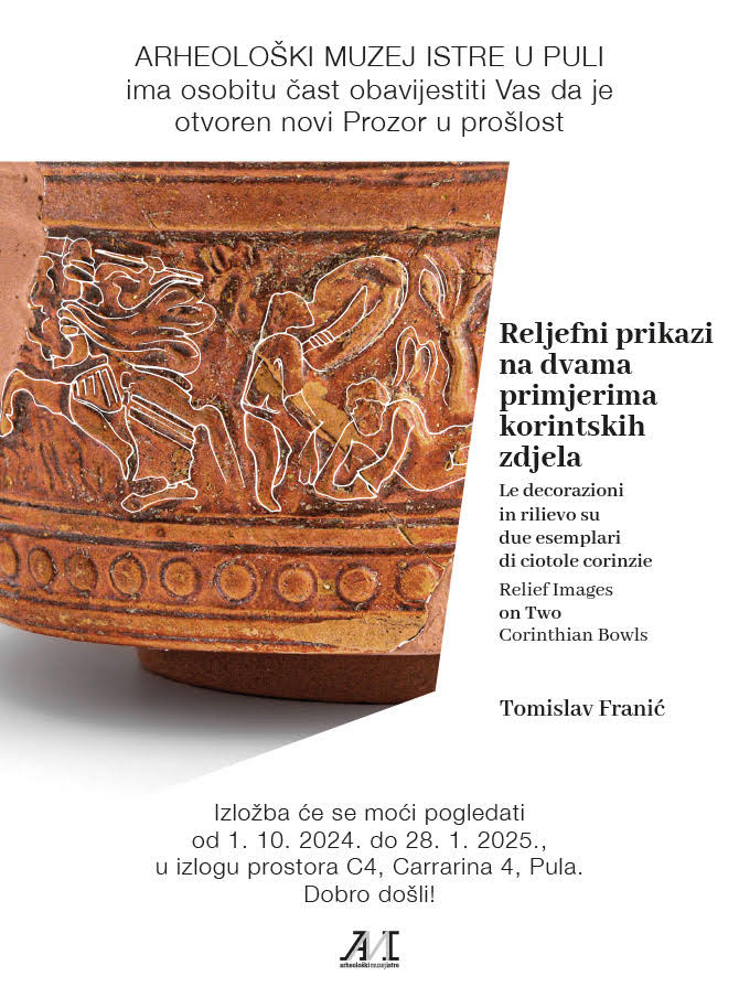 U Arheološkom muzeju Istre otvorena je izložba »Reljefni prikazi na dvama primjerima korintskih zdjela« autora Tomislava Franića, koja se održava u sklopu programa Prozor u Prošlost. Izložba je otvorena 1. listopada u Galeriji C4, Carrarina 4, Pula, te će trajati do 28. siječnja 2025. godine.