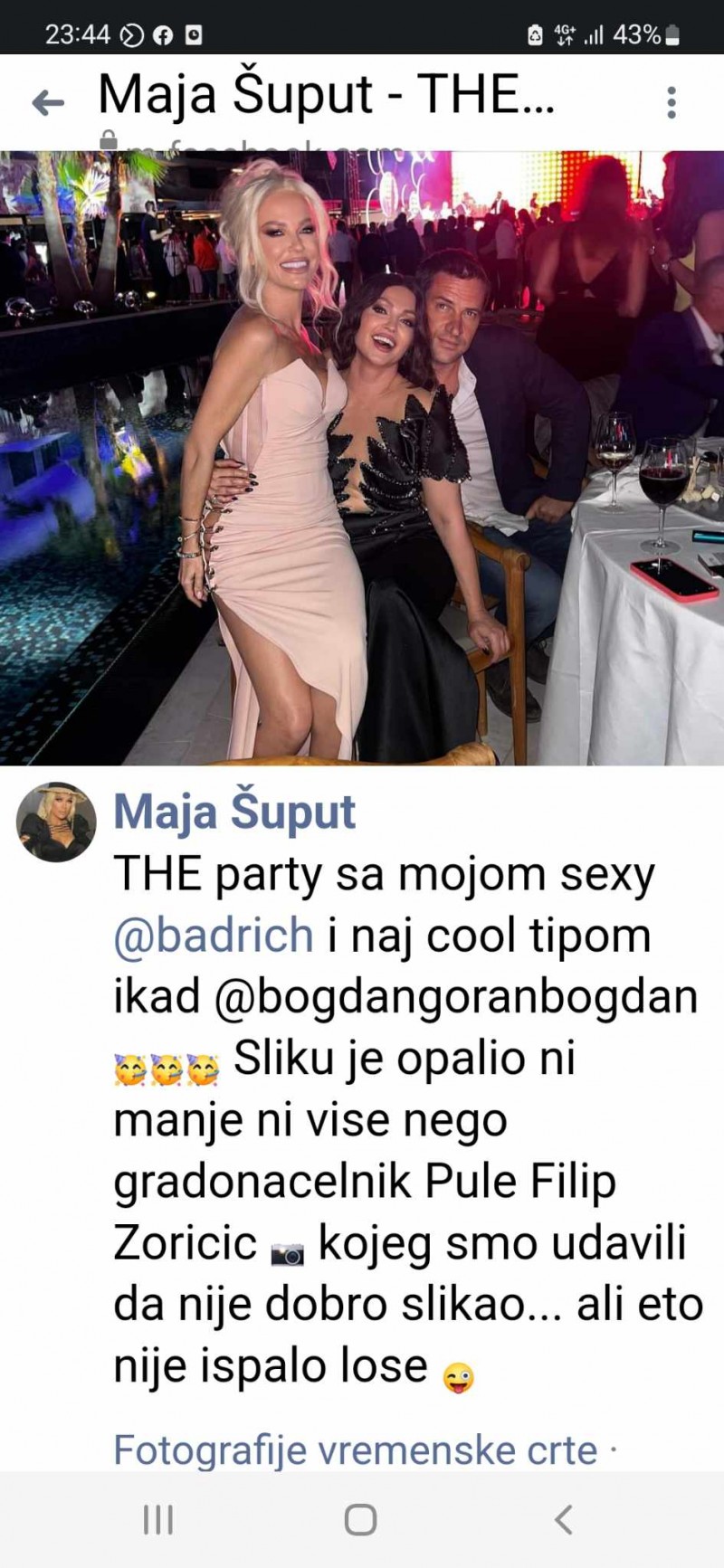 Da fotografa, evo se Maja Šuput hvali kako je fotkao nju i glumca Gorana Bogdana To je onaj glumac s dva imena, Goran Bogdan, možda Bogdan Goran, a Maja Šuput je umjetnica, to znate, glazbena diva, pjevačica s dubokim dekolteom i dubokim štihom Mediterana, baš ono umjetnica Zoričićevog umjetničkog kalibara, nije pevaljka, ona je defakto umjetnik, nešto ko Ibro Dirka, onaj koji nije htio para, koji će vazda ostat fukara.