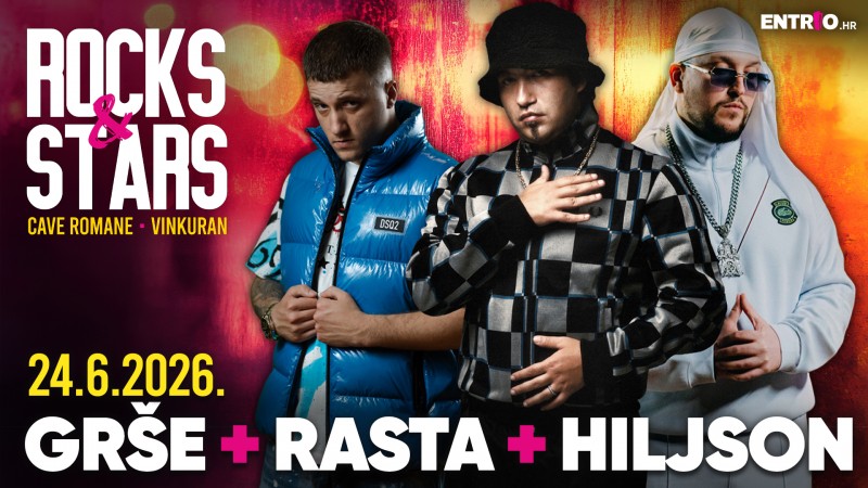 Rocks & Stars Festival @CaveRomane 2026 u srijedu, 24. lipnja otvara bombastična trio kombinacija nove glazbene generacije! Hiljson Mandela, Grše & Rasta prve večeri festivala preuzimaju pozornicu smještenu među impresivne zidine antičkog kamenoloma u Vinkuranu pored Medulina.