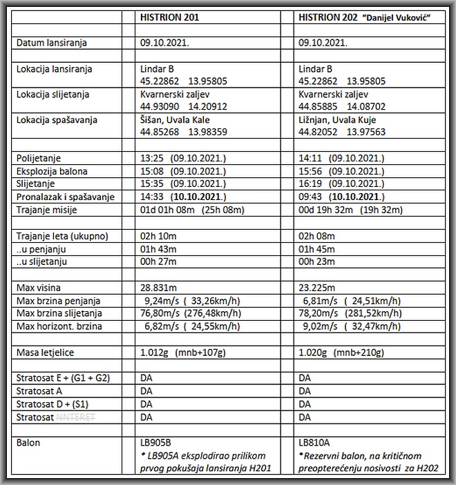 Dvije autonomne bespilotne letjelice Istarskog svemirskog programa Astronomske udruge Vidulini, H201 i H202 „Danijel Vuković“, uspješno su odradile svoje zahtjevne misije u bliskom svemiru 09./10. listopada ove godine. Njihovo je lansiranje izvorno bilo planirano za 02.10.2021. no ono je tada odgođeno zbog tehničkih problema neposredno prije polijetanja. Kako smo već pisali, toga je dana svoju uspješnu misiju izvršila eksperimentalna letjelica H301.