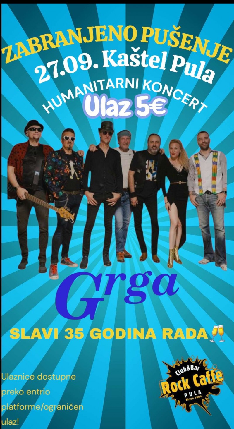 Povodom 35 godina predanog rada i angažmana u zajednici, Grga organizira veliki humanitarni koncert na jedinstvenoj lokaciji pulskog Kaštela. Uz podršku Rock Caffea Pula, događaj će se održati u petak, 27. rujna, a glavna glazbena atrakcija bit će legende domaće rock scene – Zabranjeno pušenje.