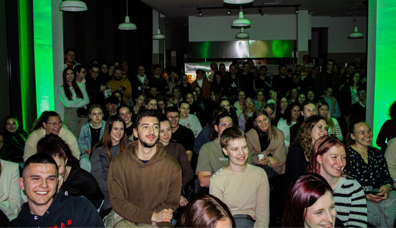 Nakon plesa i kviza, studenti su u utorak, 23. travnja imali priliku nasmijati se do suza. Evo kako su to objasnili iz Studentskog Centra Pula: "Sulude misli koje svatko od nas pomišlja u onom dijelu uma koji s razlogom ignoriramo, do suza su nasmijale naše studente koji su višestrukim aplauzima nagradili međimurskog komičara potvrđujući činjenicu da je Vlatko jedan od ponajboljih komičara na ovim prostorima".