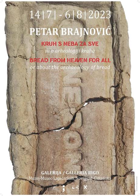 Muzej Lapidarium vas sa zadovoljstvom poziva na izložbu Petra Brajnovića: Kruh s neba za sve ili o arheologiji kruha. Otvorenje izložbe bit će uz prisutnost umjetnika i Suzane Marjanić u Galeriji Rigo u 21 sat.