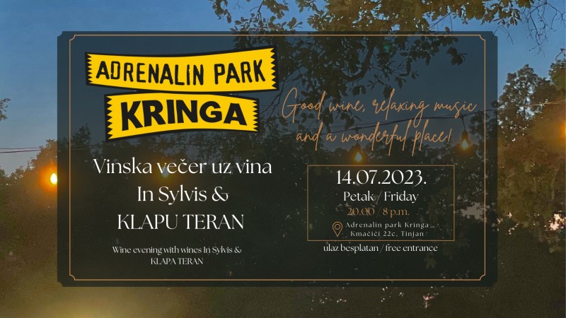 Ovog vas petka, 14. srpnja, u magičnom ambijentu hrastove šume Adrenalinskog parka Kringa od 20 sati čeka vinska večer uz vina IN SYLVIS i KLAPU TERAN.