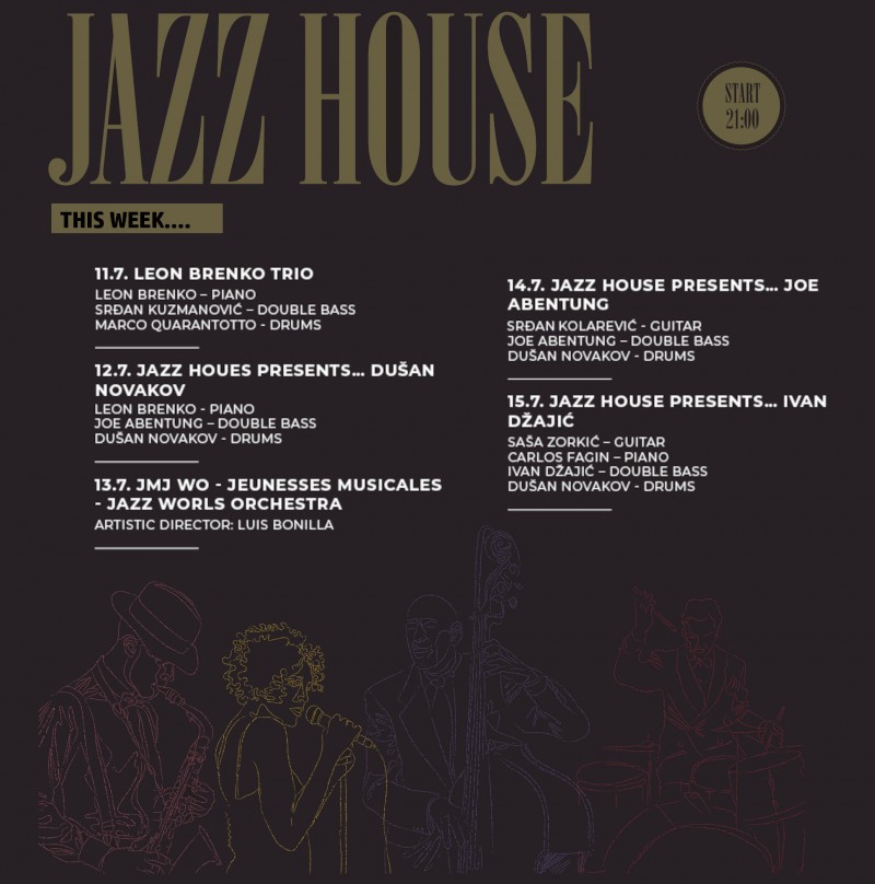 U subotu 15.7. u Jazz House nam dolazi mladi zagrebački basist Ivan Džajić. Ivan je diplomirao farmaciju što je i njegova profesija, no od malena gaji ljubav prema glazbi. Ostvaruje suradnje sa brojnim sudionicima zagrebačke jazz scene, a posljednjih godina živi u Ljubljani te je i tamo aktivan na glazbenoj sceni. Uz Ivana Džajića na kontrabasu nastupiti će dva pulska glazbenika Saša Zorkić na gitari i Carlos Fagin na klaviru, a na bubnjevima ćemo još jednom moći slušati Dušana Novakova.