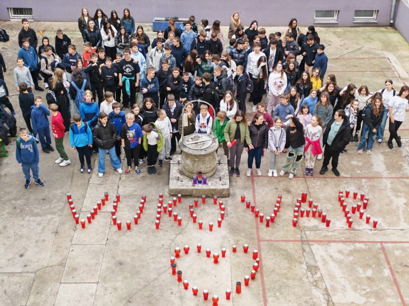 Nakon fotografiranja je isti natpis napravljen ispred ulaza u školu, a lampioni su upaljeni i ostati će ispred škole do povratka učenika. Željeli smo doprinijeti obilježavanju ovog, za našu državu važnog dana te učenike podsjetiti na važnost sjećanja na žrtve i stradanja u Domovinskom ratu.
