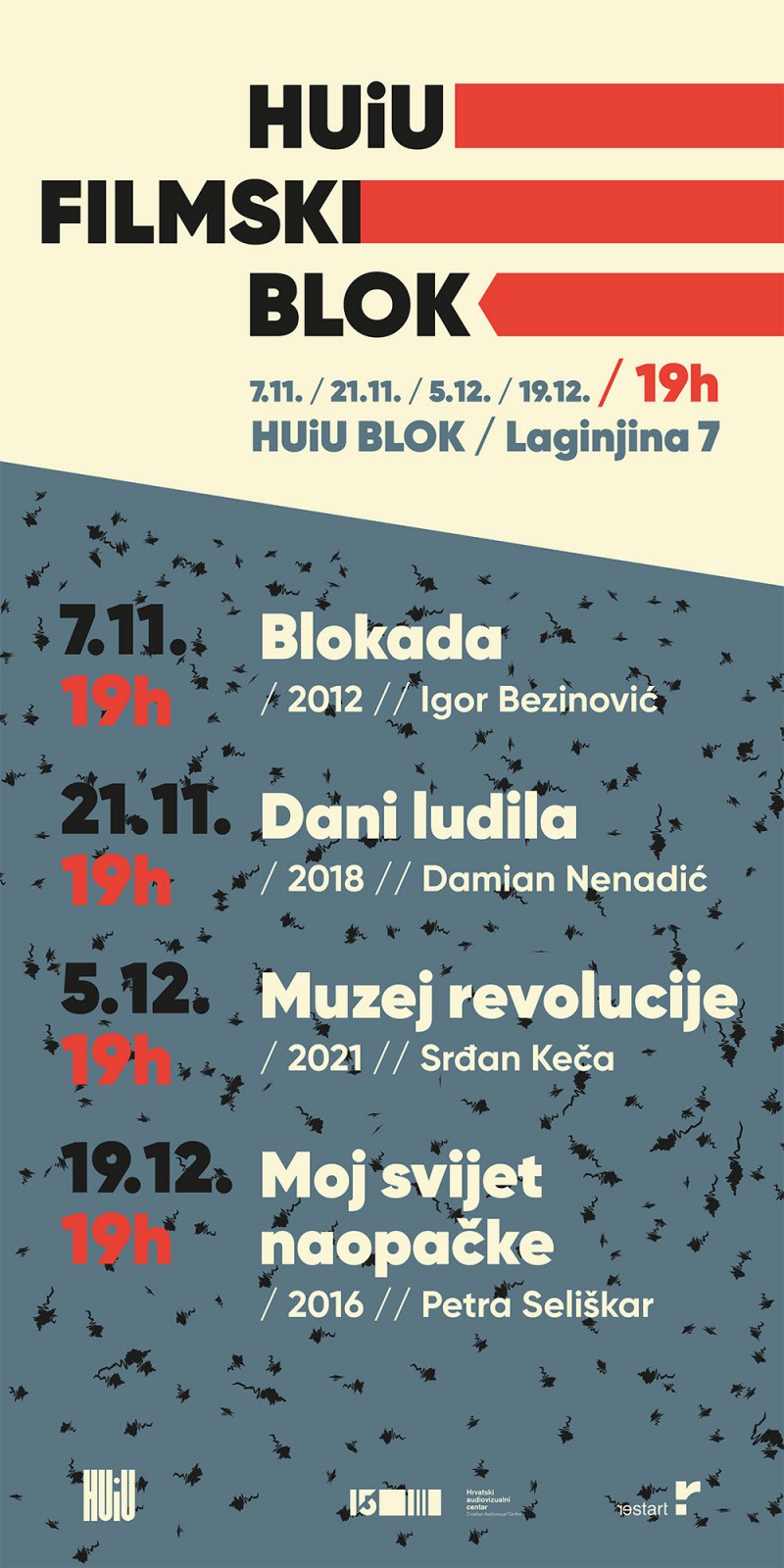 HUiU u suradnji s Restartom organizira HUiU filmski BLOK, ciklus dokumentarnih filmova. Dokumentarni filmovi utorkom u HUiU BLOK-u, u 19 sati, Laginjina 7, Pula.