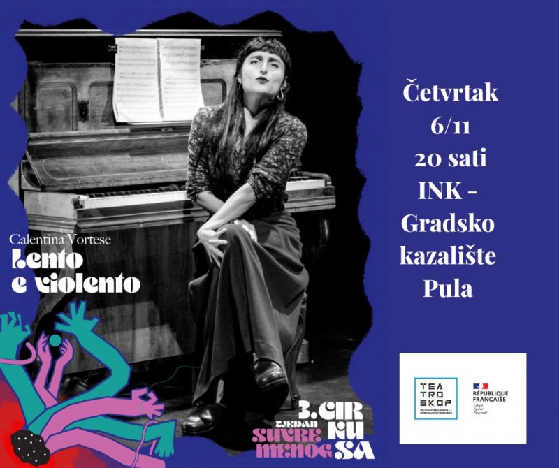 Predstava francuske autorice Valentine Cortese hibridni je spoj nove magije (magie nouvelle), suvremenog plesa i fizičkog kazališta. „Lento e violento” otvara prostor između stvarnog i iluzornog, baveći se percepcijom, ponavljanjem i apsurdom. Kroz iluzionističke tehnike i suvremenu dramaturgiju stvara atmosferu između tišine, ironije i sumnje, pozivajući publiku na introspektivno iskustvo.