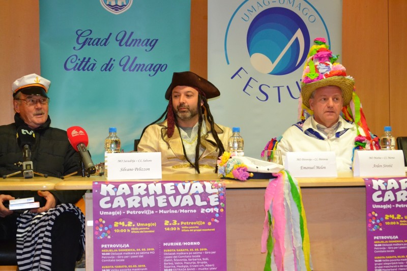 Bogat i raznolik program ovogodišnjeg karnevala na konferenciji za medije održanoj 19. veljače 2019. godine u Gradskoj vijećnici, predstavili su upravo predstavnici glavnih karika u organizaciji ove hvalevrijedne manifestacije, a u prisustvu zamjenika gradonačelnika Ivana Belušića, resornog pročelnika te ravnateljica umaških dječjih vrtića. U veselom i opuštenom tonu, medijima i javnosti obratili su se ravnateljica Ustanove FESTUM Larisa Gašperini, predstavnik MO-a Petrovija Emanuel Melon, predstavnik MO-a Murine Arden Sirotić te predstavnik MO-a Savudrija Silvano Pelizzon.