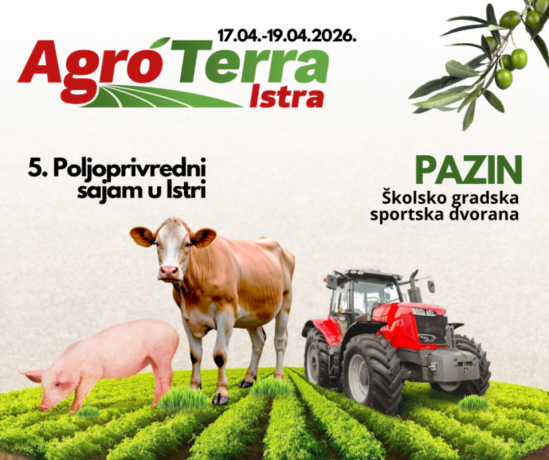 Pazin će od 17. do 19. travnja ponovno biti domaćin jednog od najznačajnijih poljoprivrednih događaja u regiji - jubilarnog petog izdanja međunarodnog poljoprivrednog sajma AgroTerra Istra, koji se održava na 2.000 kvadrata unutarnjeg i više od 5.000 kvadrata vanjskog izložbenog prostora Školsko-gradske sportske dvorane Pazin.