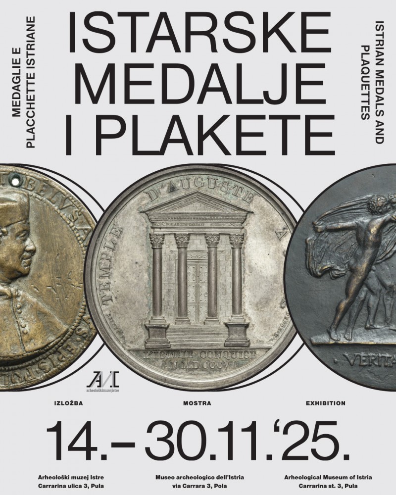 Pozivamo vas na otvorenje izložbe „Istarske medalje i plakete“ koje će se održati u petak, 14. studenoga 2025. u 16 sati u Edukacijskoj dvorani Arheološkog muzeja Istre u Puli. Autori izložbe su Erika Trbojević i Marko Šarinić.
