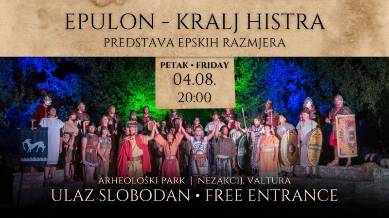 A tko je bio kralj Epulon, o čijim posljednjim danima govori predstava koja nikoga neće ostaviti ravnodušnim? Dovoljno je zaviriti u maleni muzejski postav u sklopu lokaliteta Nezakcij kako biste i prije predstave upoznali zastrašujuću priču o neuspjelom pokušaju Histra da se obrane od napada Rimljana 177. godine pr. Kr. Kad je vidio da će ih Rimljani poraziti, kralj Epulon donio je strašnu odluku i povukao drastičan potez. Prije no što si je oduzeo život naredio je svojim vojnicima da liše života žene i djecu bacanjem preko zidina jer nije želio žive Histre u rukama Rimljana o čemu podrobno piše rimski povjesničar Tit Livije.