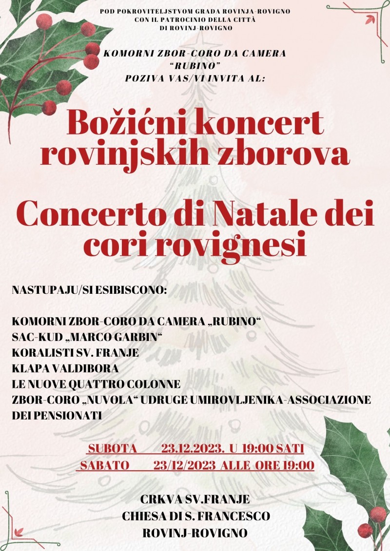 Ove subote u 19 sati održat će se Božićni koncert rovinjskih zborova u Crkvi Sv. Franje te su svi dobrodošli poslušati što je pripremilo šest rovinjskih zborova.