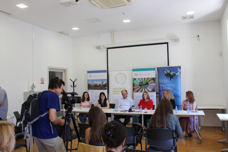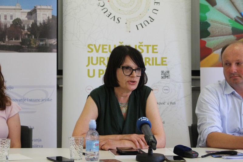 U prostoru Studentskog doma danas se održala druga press konferencija Sveučilišta Jurja Dobrile u Puli na temu upisa 2023./2024. Na konferenciji su izlagali prof. dr. sc. Iva Blažević, dekanica Fakulteta za odgojne i obrazovne znanosti, prof. dr. sc. Lina Pliško, dekanica Filozofskog fakulteta, doc. dr. sc. Emina Pustijanac, dekanica Fakulteta prirodnih znanosti, Dijana Majstorović, v. pred., voditeljica studija Sestrinstvo, doc. art. Breza Žižović, voditeljica studija Dizajn i audiovizualne komunikacije alumna, Mateja Kelemenić, mag. educ. croat.