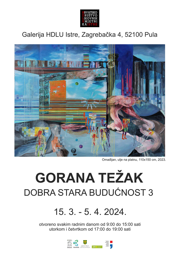 Večeras u Puli ne propustite otvorenje samostalne izložbe Gorane Težak pod nazivom "Dobra stara budućnost 3" koje će se održati u galeriji HDLU-a Istre u 19 sati.