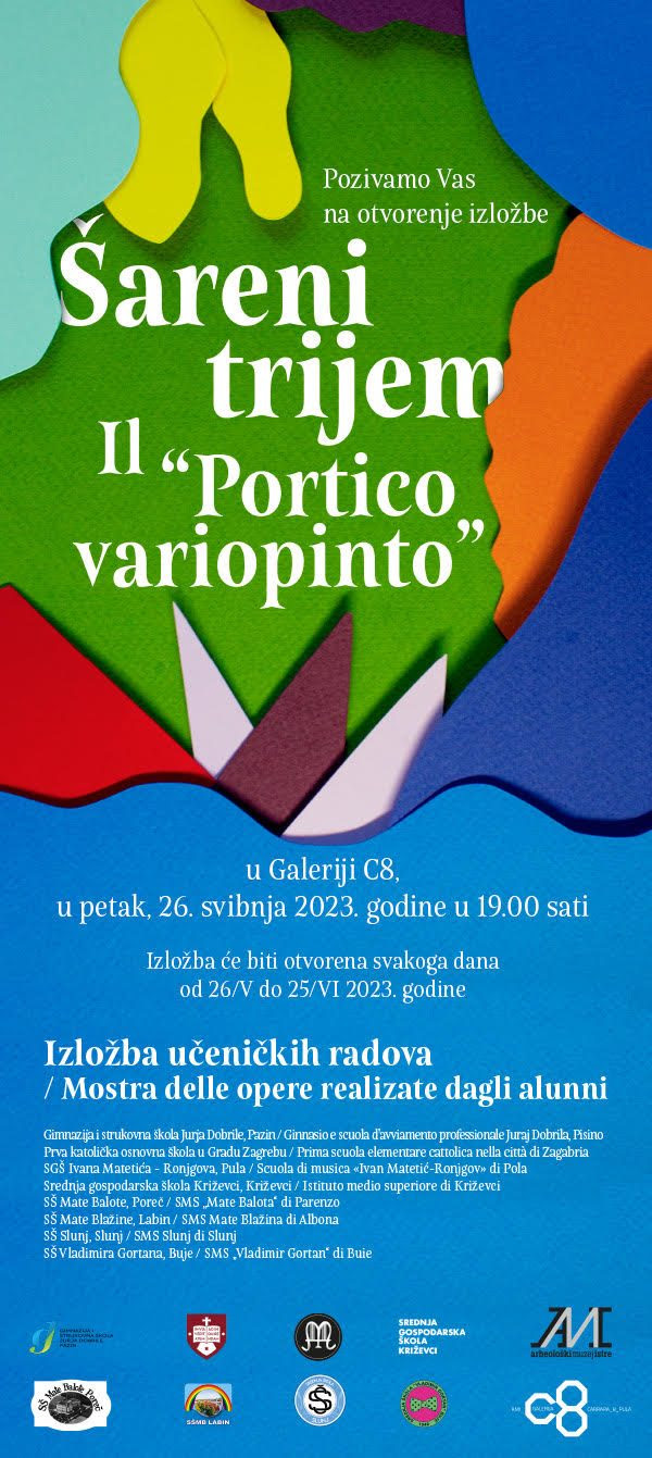 U petak, 26. svibnja 2023. u 19 sati u Galeriji C8 u Carrarinoj 8 u Puli otvara se izložba “Šareni trijem”. Riječ je o učeničkoj izložbi inspiriranoj antičkim naslijeđem i svijetom latiniteta.