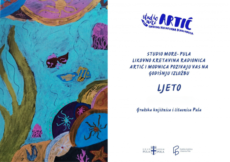 Ljeto - godišnja izložba radova polaznika radionica Studija More Likovno-kreativne radionice Artić i Modnice otvorila se 26. lipnja u izložbenom prostoru Gradske knjižnice i čitaonice Pula.