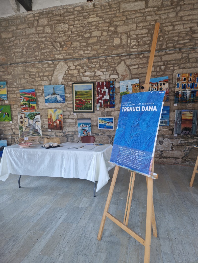 U srijedu 31. svibnja otvorila se izložba "Trenuci dana" u prekrasnoj galeriji Loža na medulinskoj placi te su je svi zainteresirani mogli pogledati tijekom cijelog mjeseca lipnja. Izložba se sastoji od radova članova likovne sekcije udruge. Radi se o akrilima uz ulje na platnu i akvarelima, a pojedini članovi izložili su i svoje radove u keramici.
